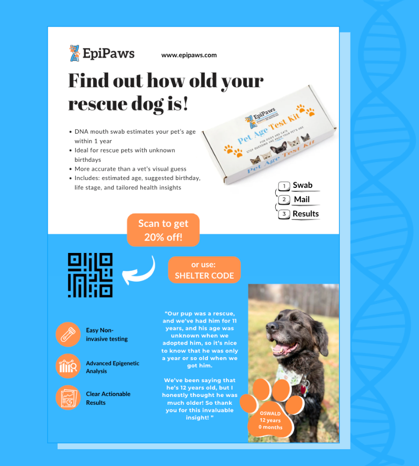We want to help your shelter/rescue thrive and help your adopters make informed health decisions.